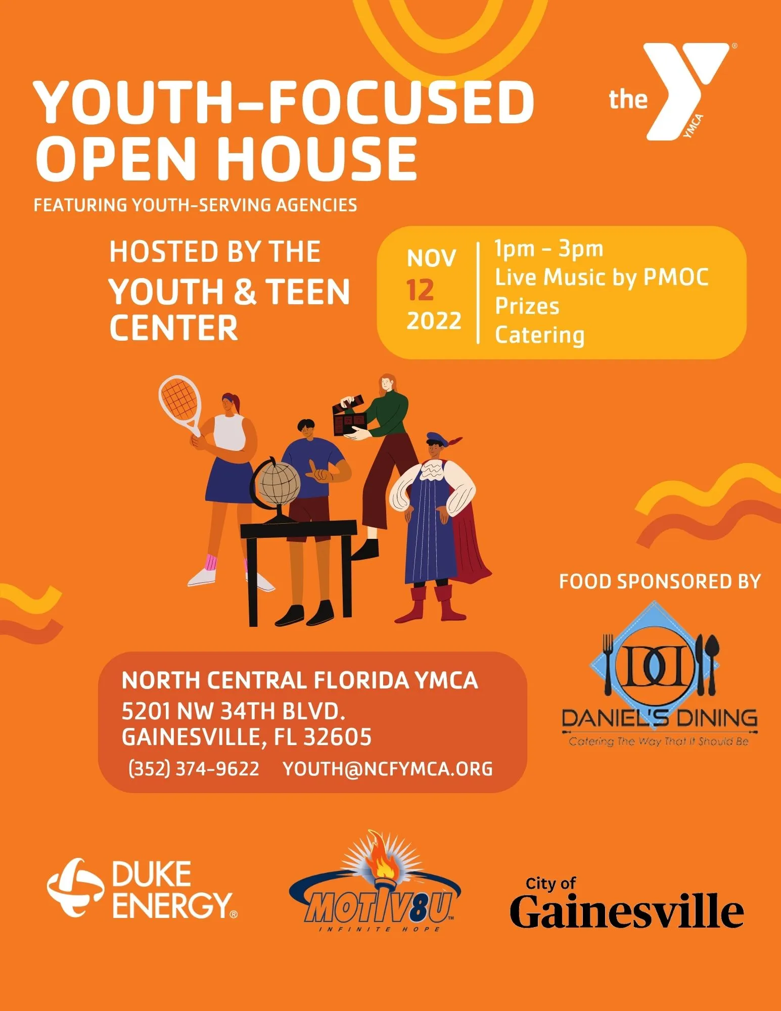 Youth-Focused Open House Featuring Youth-Serving Agencies Join us Saturday, Nov. 12, 2022 from 1pm - 3pm for live music by PMOC, Prizes, can Catering.